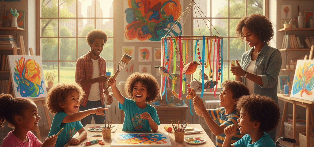 - تقوية الروابط الأسرية: تشجع الأنشطة الفنية العائلات على قضاء وقت ممتع معًا، وتعزيز التواصل والتفاعل بين أفراد الأسرة.