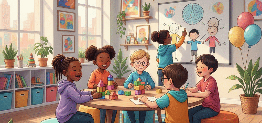 - العلاج الجماعي: يوفر هذا العلاج فرصة للأطفال للتفاعل مع أقرانهم وتعلم المهارات الاجتماعية في بيئة آمنة وداعمة.