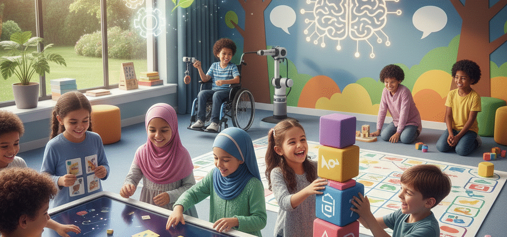 نستخدم استراتيجيات لزيادة التفاعل للأطفال، مما يساعدهم على تطوير مهاراتهم الاجتماعية وتحسين قدرتهم على التواصل مع الآخرين.
